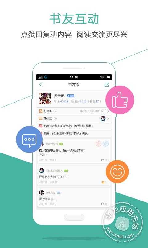 4、社交閱讀體驗(yàn):與好友一起分享閱讀的快樂,評(píng)論、點(diǎn)贊、分享等功能一應(yīng)俱全,讓閱讀不再孤單。