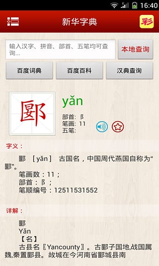 2、查詢(xún)便捷:支持多種查詢(xún)方式,如拼音查詢(xún)、部首查詢(xún)、筆畫(huà)查詢(xún)等,讓您快速找到所需字詞。