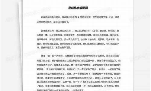 摘要:,,本場足球比賽主持稿詳細(xì)介紹了比賽的背景、參賽隊伍、比賽規(guī)則及流程,為觀眾營造熱烈的比賽氛圍。內(nèi)容包含對比賽雙方的簡短介紹、比賽進(jìn)程的把控、精彩瞬間的點評以及比賽結(jié)果的宣布等環(huán)節(jié)。主持稿語言生動,充滿激情,旨在提升比賽的觀賞性和參與度。